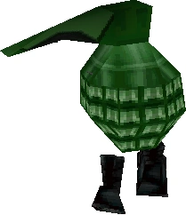 Handgrenaders are enemies found in the Army Channel in Gex 3: Deep Cover Gecko. The grenades walk up to Gex and their blast radius can catch him even when out of range by a few feet. The only way to destroy them before they blow up is with the machine gun.
