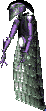 Rez's form in Gex is much thinner and sleeker than his later designs; Rez is purple in this design. Rez does not have any legs, he travels by hovering. The back of his head is full of liquid noise; there is a large, sharp blade at the back of his head; Rez has several large, sharp teeth; his right eye is a test pattern, while his left eye is a film leader. This design is the only one where Rez wears a cloak; there is a circle on Rez's abdomen. His arms have several spikes all along them; his hands look skeletal.