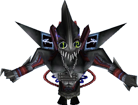 In first game, Rez needed a mascot for his empire's network where he sends a robotic fly to Hawaii and the chosen one was Gex where the same swallowed his fly.[5] When he is confronted by Gex, Rez tries to attack him with remote controle as boomerang, beams, cyclone spin and lasers until he was defeated by being hit with Gex's spit. Rez is transformed in a energy sphere.